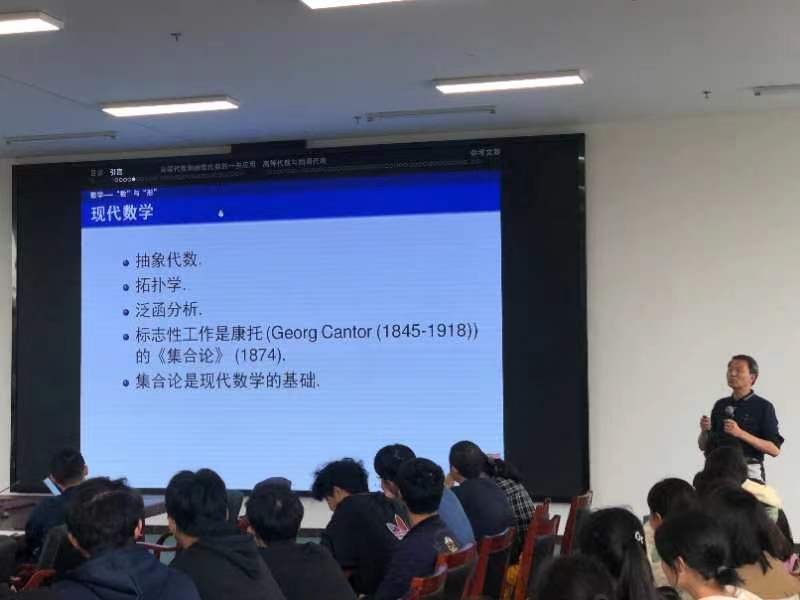 丁南庆教授从“数”与“形”谈起,介绍了高等代数和抽象代数中整数的同余与凯撒密码、矩阵与密码、整数分解与RSA密码体制等应用,并从高等代数中的线性空间发展为同调代数中的模出发,介绍了高等代数与同调代数的关系和联系,同时介绍了同调代数中投射模、内射模、平坦模、范畴的概念以及著名的塞尔问题和平坦覆盖猜测等。
