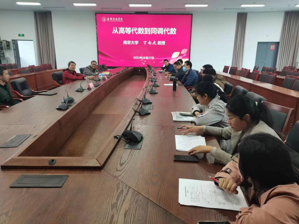 10月27日下午,南京大学博士生导师丁南庆教授应邀来理学院作题为《从高等代数到同调代数》的报告,并就有关教学科研方法和基金申报与参会教师座谈。报告吸引了理学院数学学科教师和全体学生聆听,其他学院感兴趣的教师也聆听了报告。报告由理学院院长张国印主持。