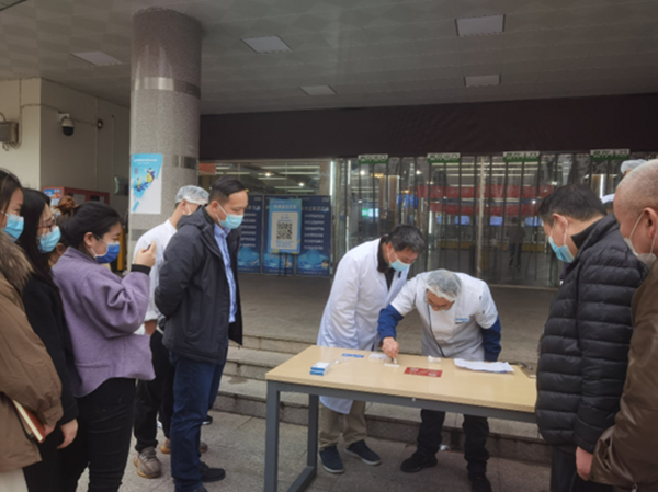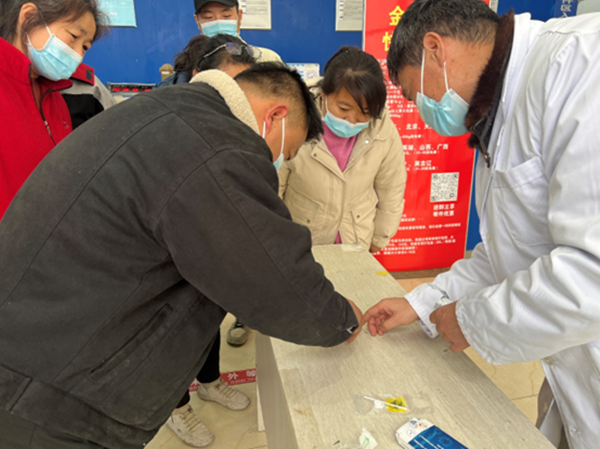王滨滨在各一线中心进行了鼻拭子采样教学,讲解新冠病毒抗原检测的基本方法、操作要领和注意事项,并指导员工代表进行现场操作。