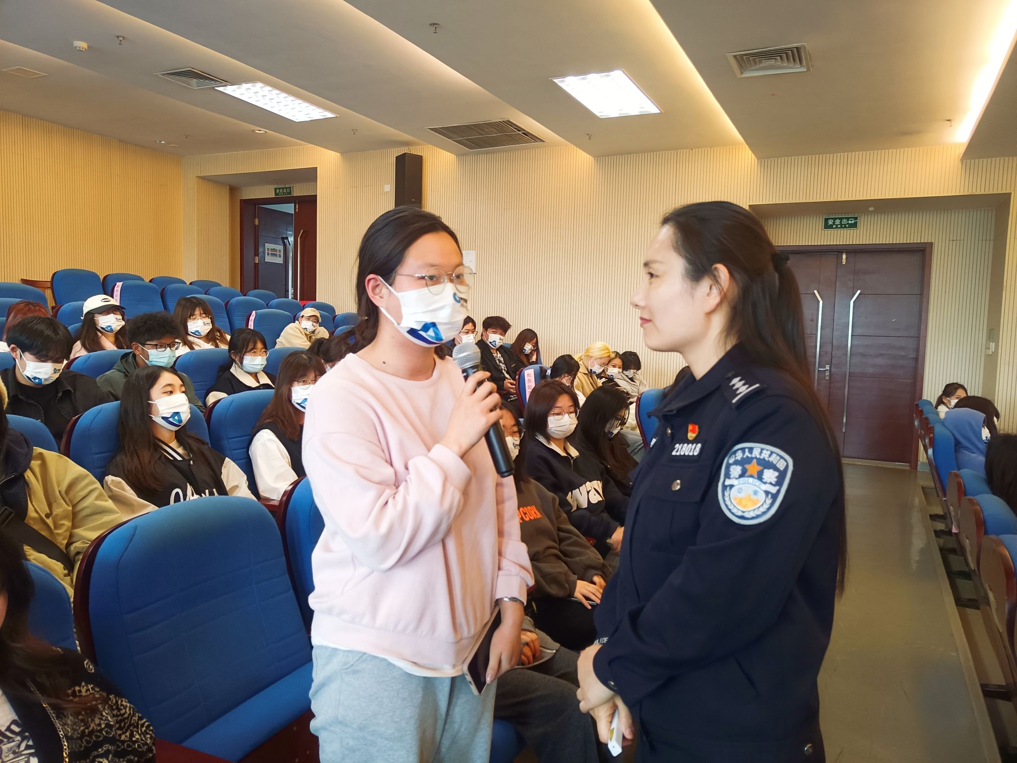 会上,李琳以案示警,结合高校真实鲜活的电信网络诈骗案例,用新颖活泼的授课方式,深入浅出地讲解新型电信网络诈骗的危害、特点和惯用手段,并进行现场问答互动。她指出,同学们一定要提高自身防范意识,不要被骗子营造的假象所迷惑,要学会用逆向思维和辐合思维,提升自己的反诈能力,遇到各种骗局做到“不理睬、不转账、不轻信、不汇款”。