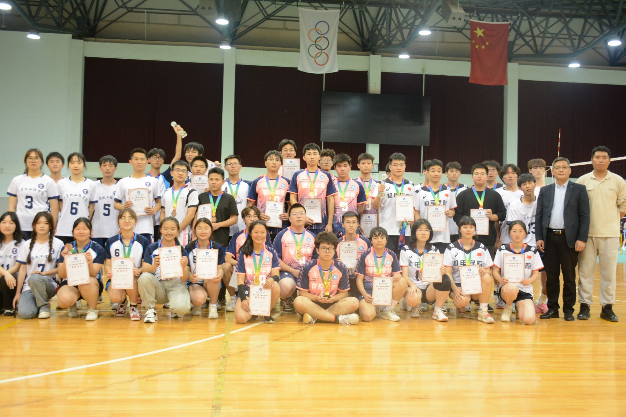 各参赛队伍经过激烈角逐,最终智控学院、机电学院、材料学院、计算机学院、人文学院、园艺学院、软件学院、国教学院荣获前八名,体育部领导为获奖团队颁发了奖杯和证书。赛场上,同学们奋勇拼搏、全力以赴,既展现了各学院同学们的团结协作和奋发拼搏的精神,又展现出了金科学子敢于挑战、勇攀高峰的精神风貌。