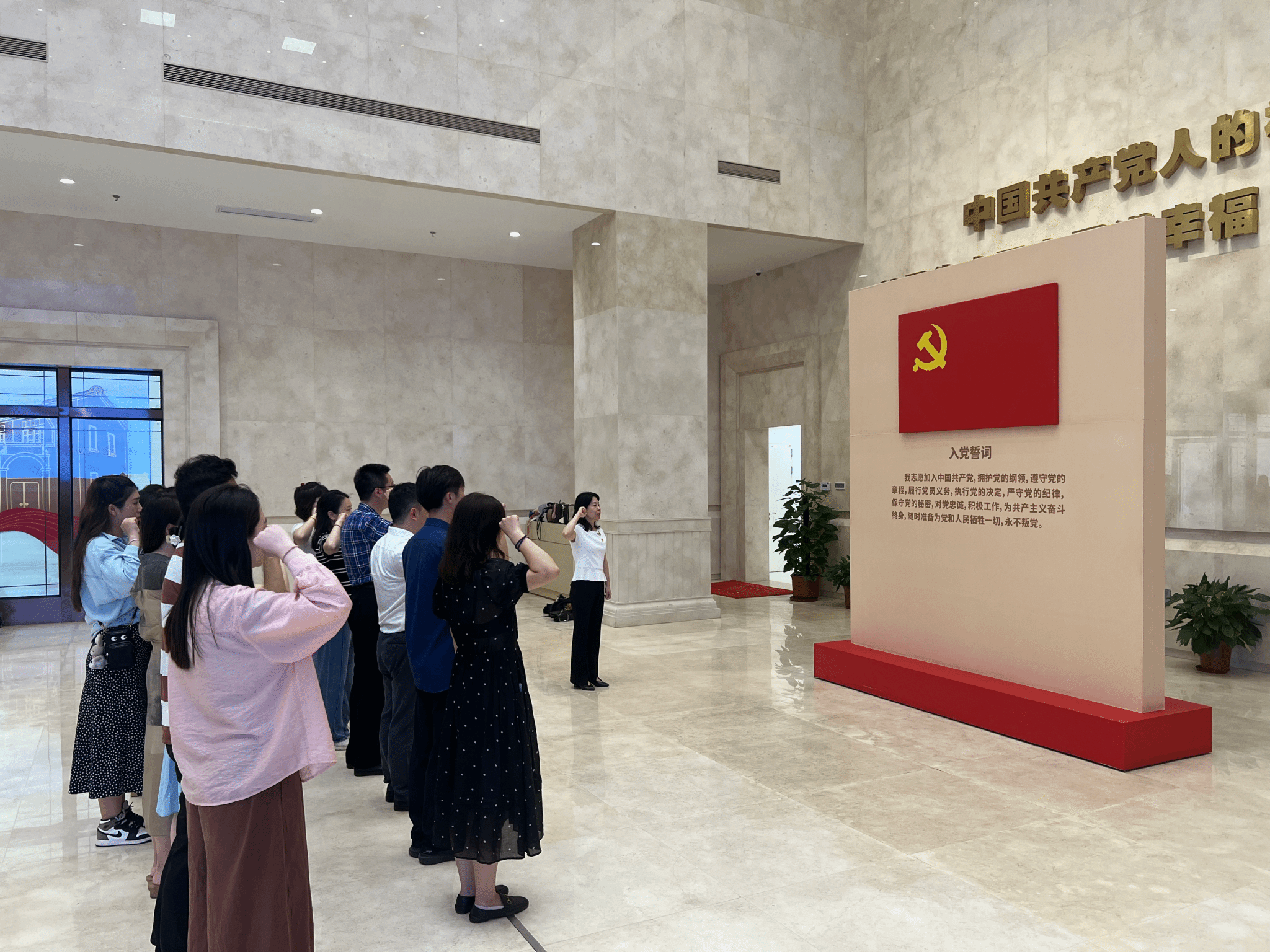 党员们前往渡江胜利纪念馆承办的"中国共产党伟大建党精神专题展”展厅进行参观,学习中国共产党在长期革命、建设、改革、复兴伟业中形成的不断践行、丰富、升华的伟大精神,党员们驻足凝视、热烈探讨,共同体会了峥嵘岁月的艰辛历程感悟了红色经典的时代内涵。随后,开展了重温入党誓词活动,党员们高举右手,重温入党誓词,以铿锵有力的誓言,展现党员终身践行初心使命的决心。