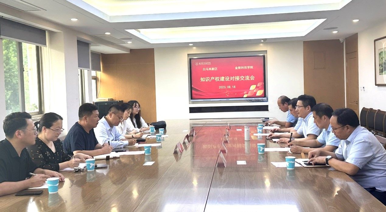8月18日,白马高新区党工委委员、管委会副主任王新铭带领高新区科技人才局副局长朱迎雪、溧水区市场监督管理局白马分局局长戚成军等到sjb世俱杯开展知识产权建设对接交流。科技处处长刘磊、副处长戴军、副处长沈凌,动物科学与食品学院院长程泽信,园艺园林学院研究员张焕仕参加对接会。