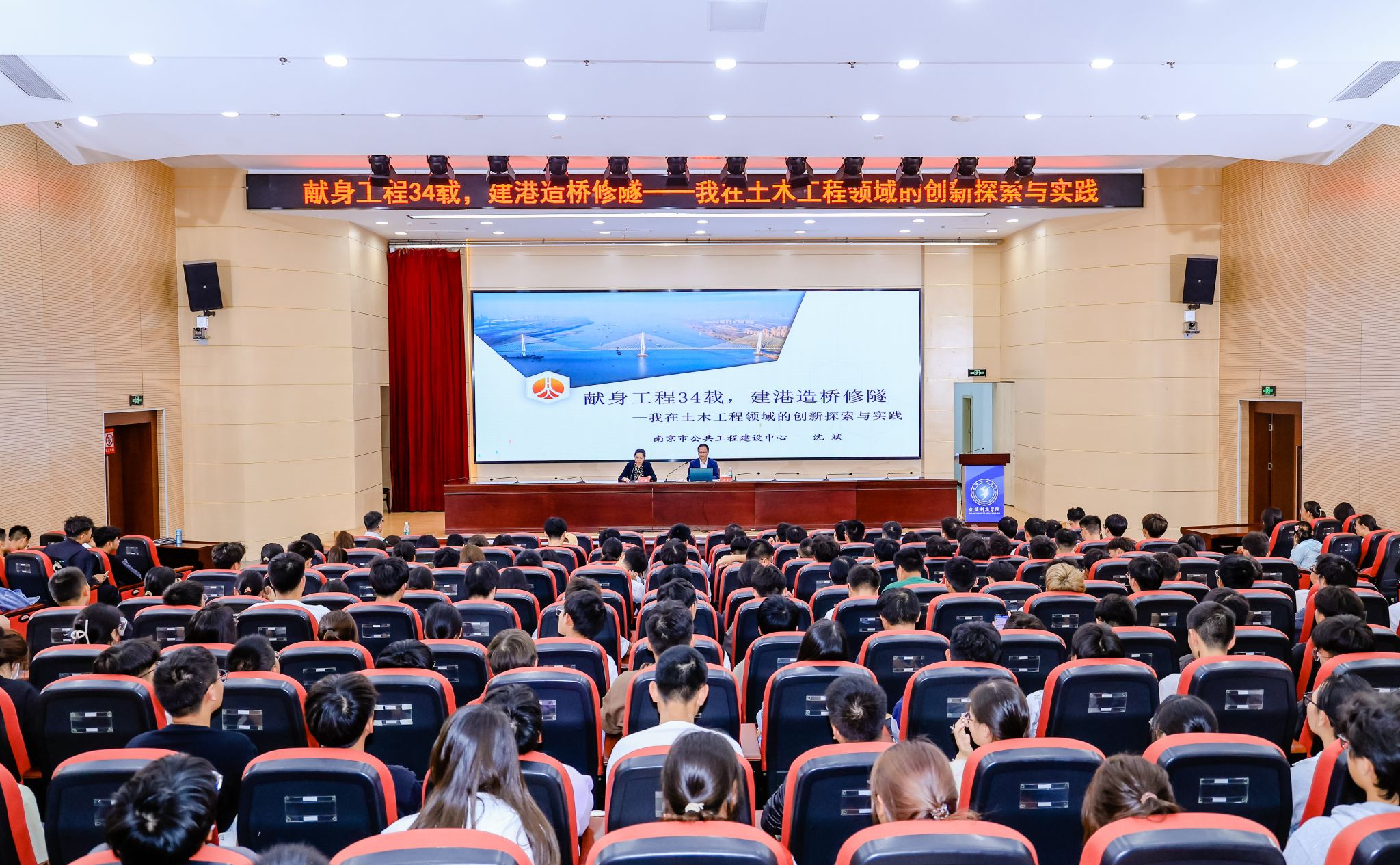 10月17日,全国先进工作者、全国五一劳动奖章获得者、南京市公共工程建设中心质量安全处处长沈斌应邀出席金科学术讲堂,为建筑工程学院师生作《献身工程34载,建港筑桥修隧——我在土木工程领域的创新探索与实践》的学术报告。建筑工程学院党委书记沈瑾、院长刘志峰、副院长梁献超出席报告会,建筑工程学院骨干教师、土木水利全体研究生、部分大一新生参加了报告会。报告会由沈瑾主持。