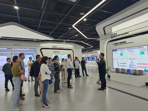 讲解员向大家介绍了紫金山实验室的概况、研究方向和成果,并带领大家环游展厅,从“未来网络、普适通信、内生安全”三个方面详细展示了实验室在通信安全和B5G/6G等方面所取得的骄人成绩。