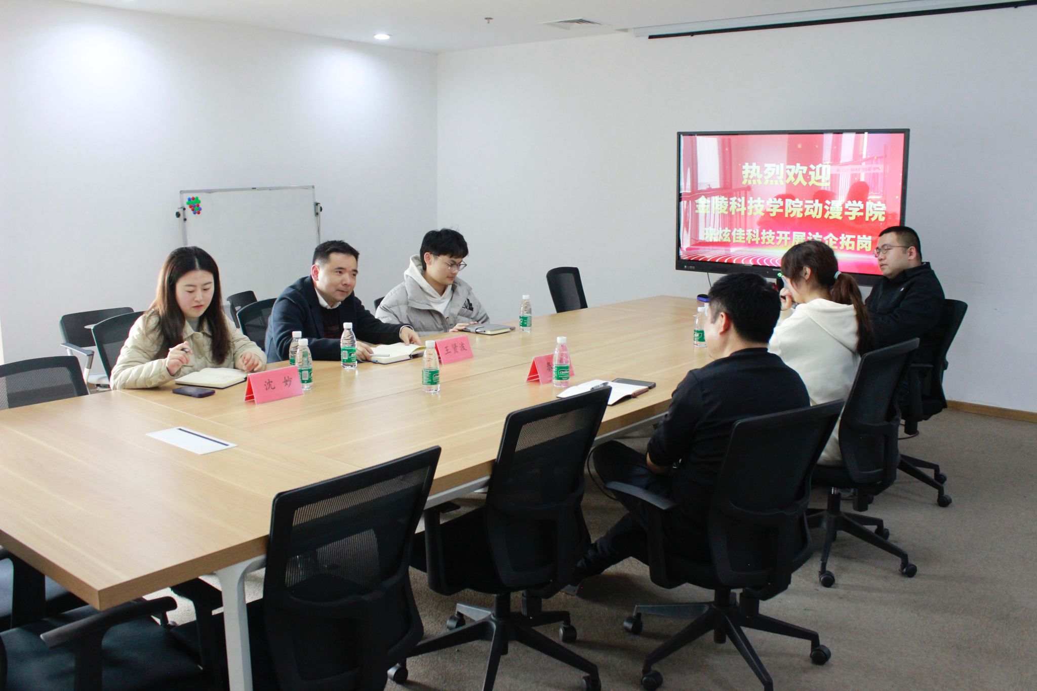 3月12日下午,动漫学院院长王贤波、数字媒体艺术专业教师沈妙等赴南京炫佳网络科技有限公司开展访企拓岗工作。此次访企托岗旨在加强学院与企业之间的联系,推动产教融合,进一步拓展学生的实习与就业渠道。南京炫佳网络科技有限公司总经理秦林,以及三位在岗校友等参加了活动。
