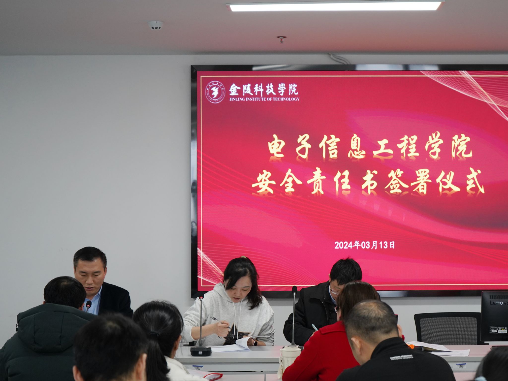 为增强全院教职工安全责任意识,认真落实学校安全工作决策部署,压紧压实各办公室、实验室责任主体安全责任,3月13日,电子信息工程学院举行了安全责任书签订仪式,全院教职工参加了此次活动。