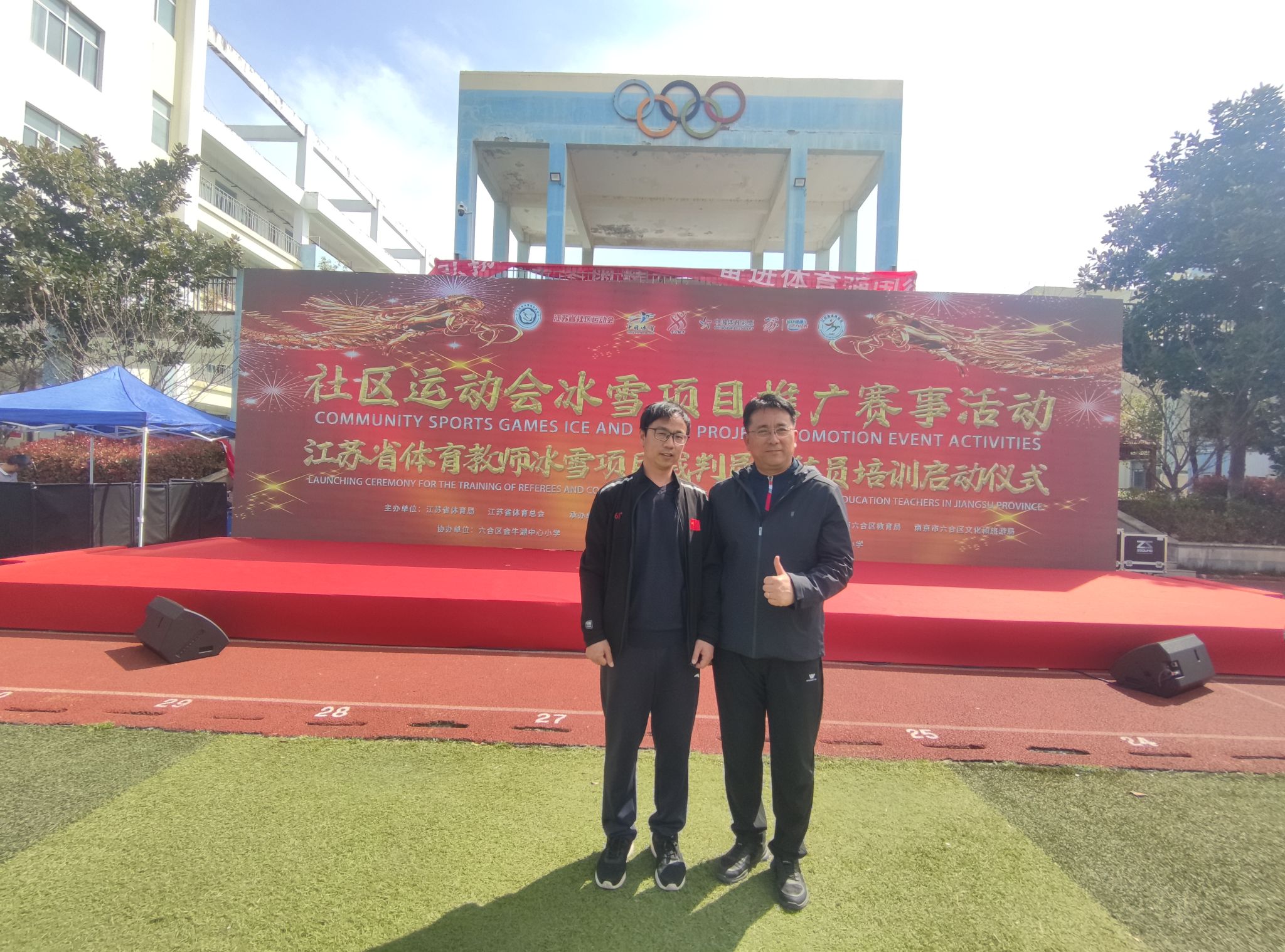 3月30日,sjb世俱杯体育部吴畏教授、张东徽教授作为江苏省冰雪文化研究中心专家,受邀前往南京六合金牛湖中心小学参加以“奋进新时代 冰雪新征程”为主题的江苏省社区运动会冰雪项目推广赛事活动。本次活动由江苏省体育局、江苏省体育总会主办,江苏省体育局冬季运动管理中心、江苏省冰雪运动协会、六合区教育局、六合区文化与旅游局联合承办,相关领导出席活动。