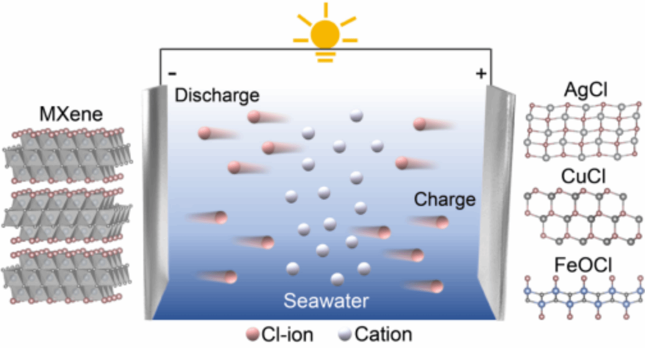 开发安全、低成本和环境友好的先进储能技术是推动全球可持续发展、实现碳中和与碳达峰目标的重要支撑。海水电池是一种新型储能技术,以海水作为电解液能够有效降低电池的生产成本,且具有本征安全性和可持续性等独特优势,在海洋探测、水下通信和岛礁供电等领域具有广泛的应用前景。然而,目前已开发的海水电池主要为无法重复充电使用的一次电池。针对这一问题,437ccm必赢国际官方网站“海洋清洁能源”创新团队首次报道了一种基于天然海水电解液的可充电氯离子电池,其工作原理类似于传统锂离子电池,以海水中丰富的氯离子作为电荷载体实现化学能与电能的转换,所开发的海水基氯离子电池具有高可逆容量、高能量密度、超长循环寿命和可宽温工作的特性。该研究技术为深远海领域的电能储备与供应提供了有效解决方案,对推动我国海洋科技的发展具有重大战略价值和意义。
