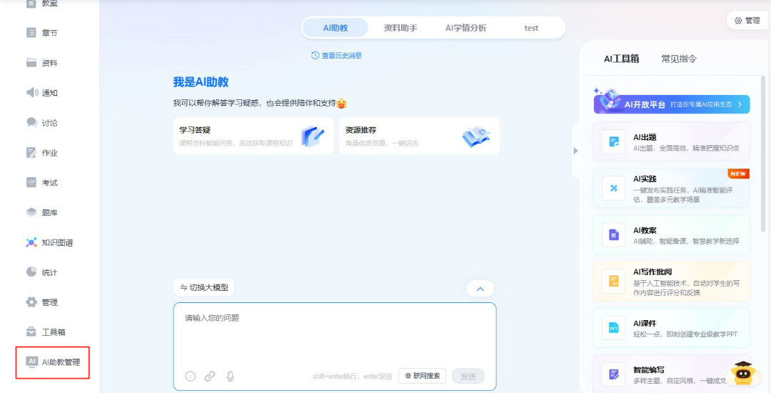 2.24小时智能学伴。24小时全天候智能问答!学习全过程助手为学生答疑解惑,并生成个性化学习建议,成为同学们最可靠的学习伙伴。学生可以随时随地向AI助教提问,快速查找对应课程的重点、难点和学习资料等。