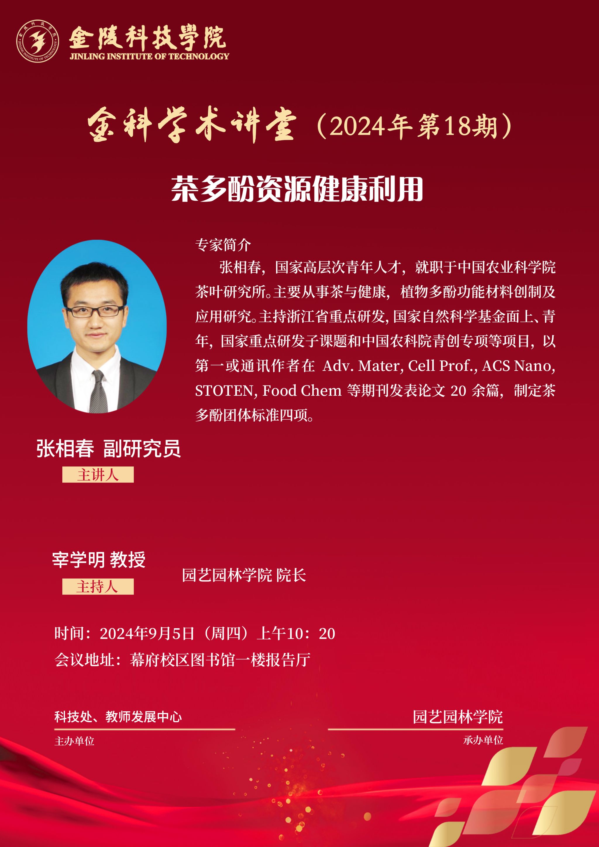关于举办线下“金科学术讲堂——茶多酚资源健康利用”学术报告的通知
